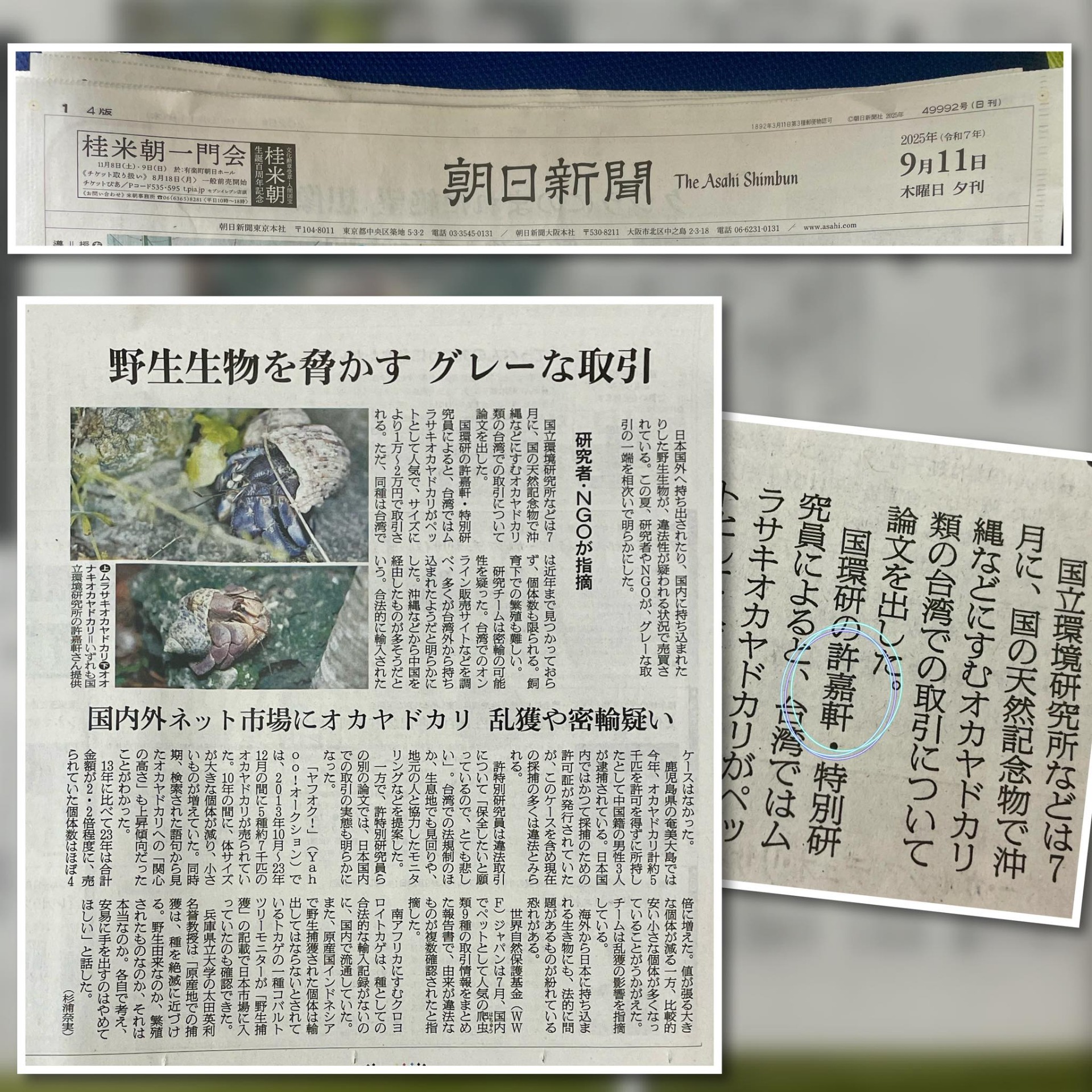*2025年,スーツケースにヤドカリ、違法に取引か 輸入記録ないトカゲの流通も,朝日新聞